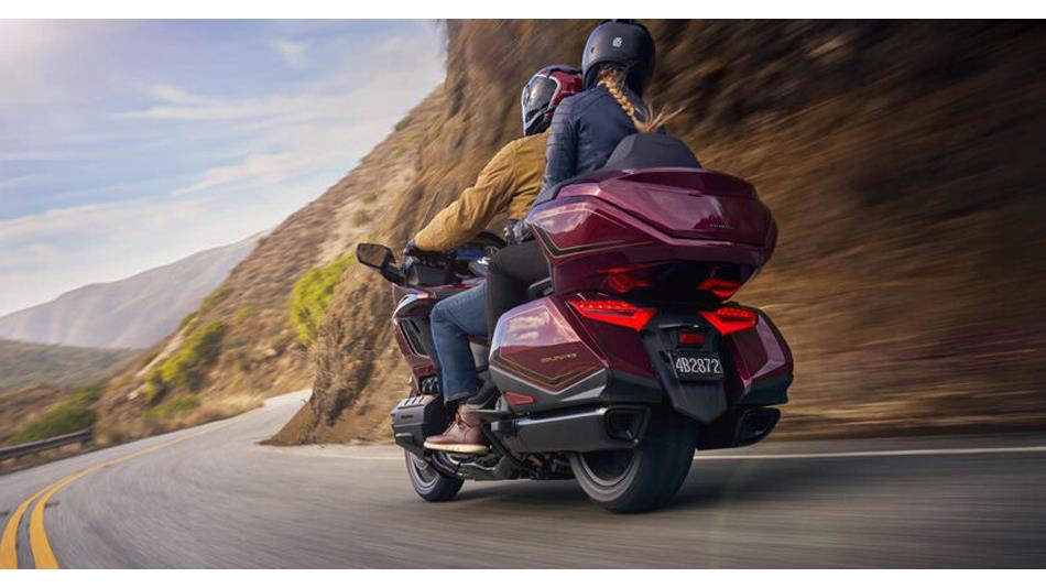 The Gold Wing Tour takes care of rider and pillion alike. With dynamic handling and engine response to satisfy any rider, the pillion can settle back into their luxurious and even more expansive space and enjoy the journey ahead. They can also easily open each pannier to access contents while seated and there's also an accessory audio switch (located on the right pannier) for soundtrack control. A USB socket in the left pannier offers a smartphone charging point. For added convenience, especially with a pillion, the Gold Wing comes equipped with two walking modes – forwards and backwards – which is ideal for parking.